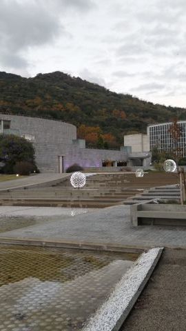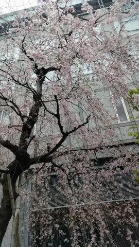 シンボルツリーは桜である。今年も美しい花を咲かせている。今満開の時を過ぎて花びらが舞っている。とても風情がある。夜はライトアップしている。