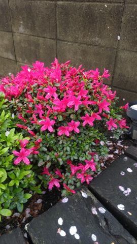 芝生が休眠から覚めて元気に青々としてきて、桜の花とのコントラストが美しい。トキワマンサクも満開になり、深紅の花をつけている。昨年から真白の花も加わった。椿も満開であり、赤と白の花をいっぱいつけている。平戸つつじ、皐月、霧島つつじも、もうすぐ咲く。