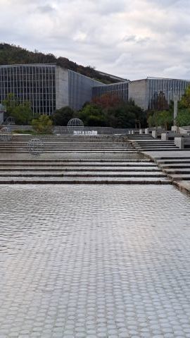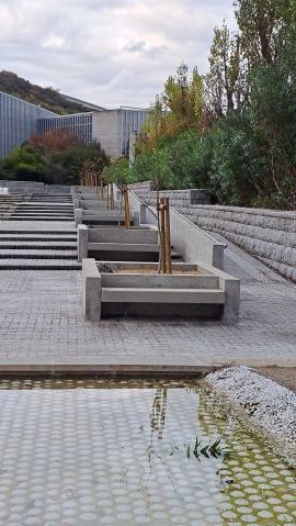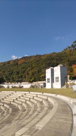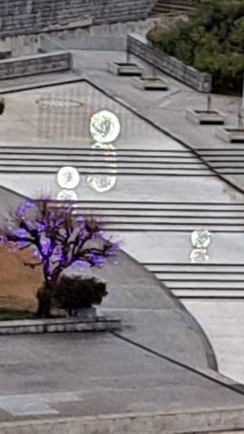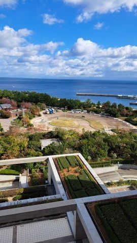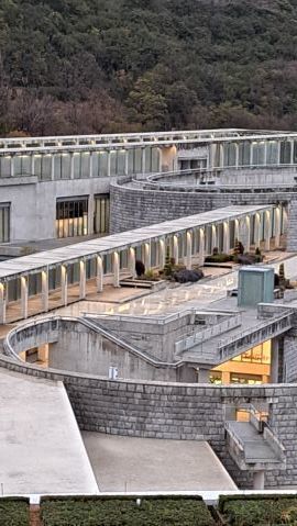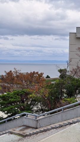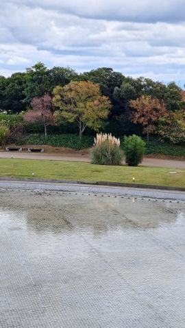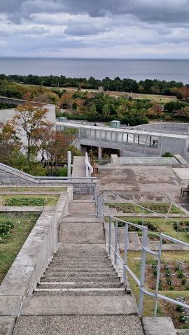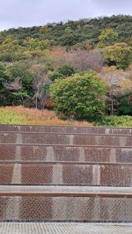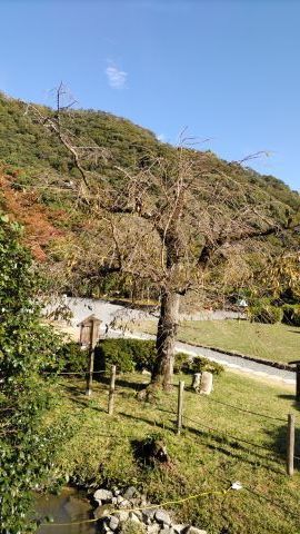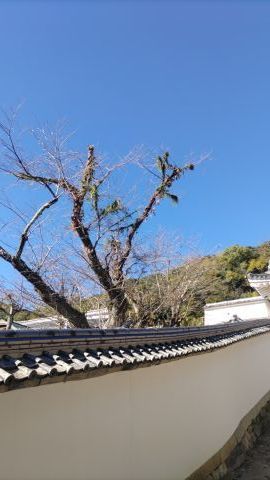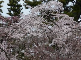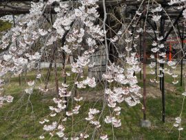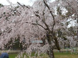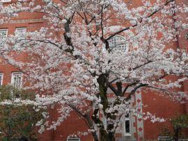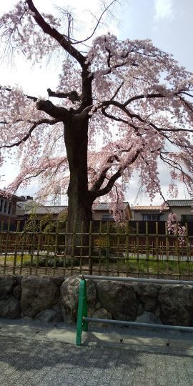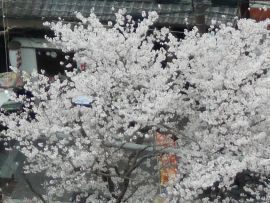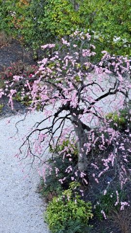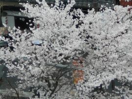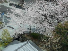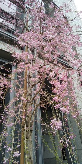 シンボルツリーは桜である。今年も美しい花を咲かせている。今満開の時を過ぎて花びらが舞っている。とても風情がある。夜はライトアップしている。